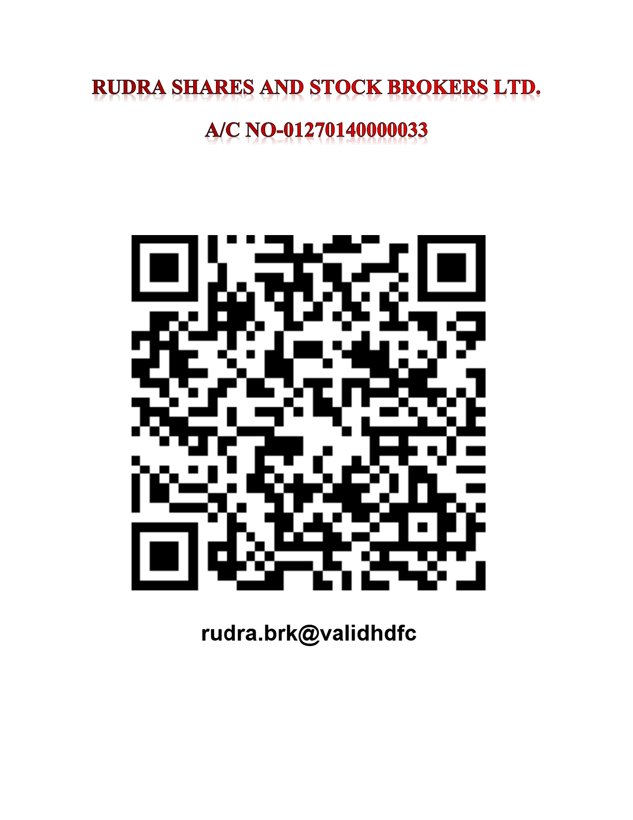 Dos and Don’ts for Retail Investors:   1) Offering fixed/guaranteed/regular returns/ capital protection schemes in stock markets whether written or oral is not allowed. Any of our representative or Authorised Person (AP) cannot offer fixed/guaranteed/regular returns/capital protection schemes.    2) Any of our representative or Authorised Person (AP) cannot enter into any loan agreement to pay interest on the funds/securities offered by you.    3) Do not fall prey to emails, SMSs and online videos luring you to trade in stock/ securities / schemes promising high returns/profits.    4) Trading in derivatives involves high risk and accordingly investors should understand the product well before trading in such segments/products.    5) Dealing in cash is prohibited. Do not place any fund and / or securities with any of our representative or Authorised Person (AP) under any circumstances.    6) Do not share your login ID, password, OTP, TPIN with any person including any of our employee/representative or Authorised Person (AP) under any circumstances. 7) Ensure to fill all the required details in the 'KYC' document by yourself and receive copy of your 'KYC' documents.    8) Ensure that all your trades are executed as per your instructions.    9) Always keep your mobile number and email id updated with us. Don't ignore any SMSs / e-mails with regards to contract notes/trades/funds and securities balances sent by RUDRA/Exchange. Verify the details of the same and report discrepancy, if any, to RUDRA in writing immediately.    10) Please verify Bank Account details from our website before transferring funds to us.